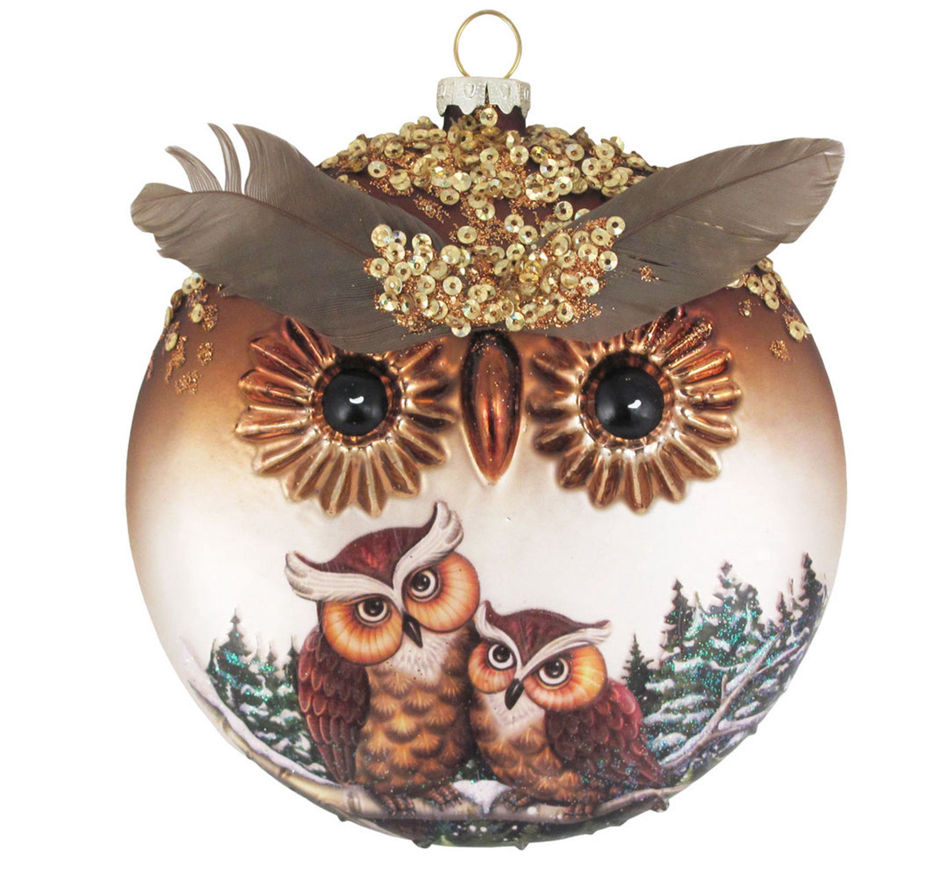 Add a touch of vintage charm to your holiday decor with this handcrafted disc ornament featuring delightful owls. Made by Christmas by Krebs, this beautifully designed ornament showcases intricate details and vibrant colors, perfect for capturing the spirit of the season. Hang it on your tree or display it as part of your festive decor to bring a whimsical touch to your celebrations. Each piece is a unique work of art, making it a wonderful gift for owl lovers and collectors alike.